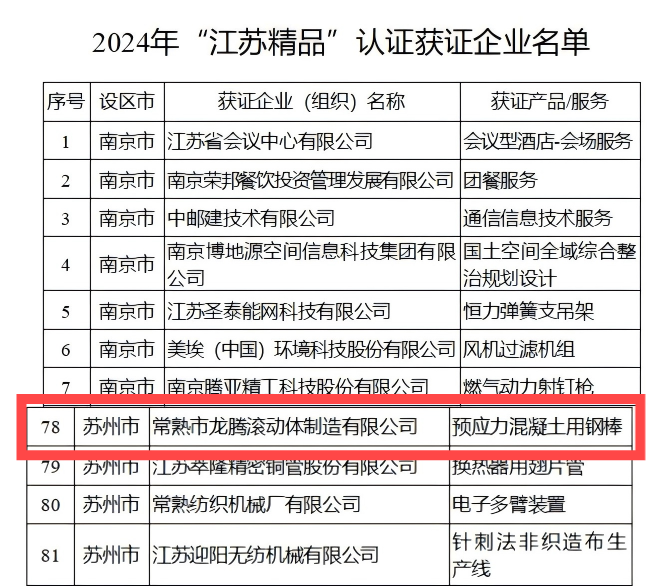 PC鋼棒榮獲“江蘇精品”認(rèn)證
