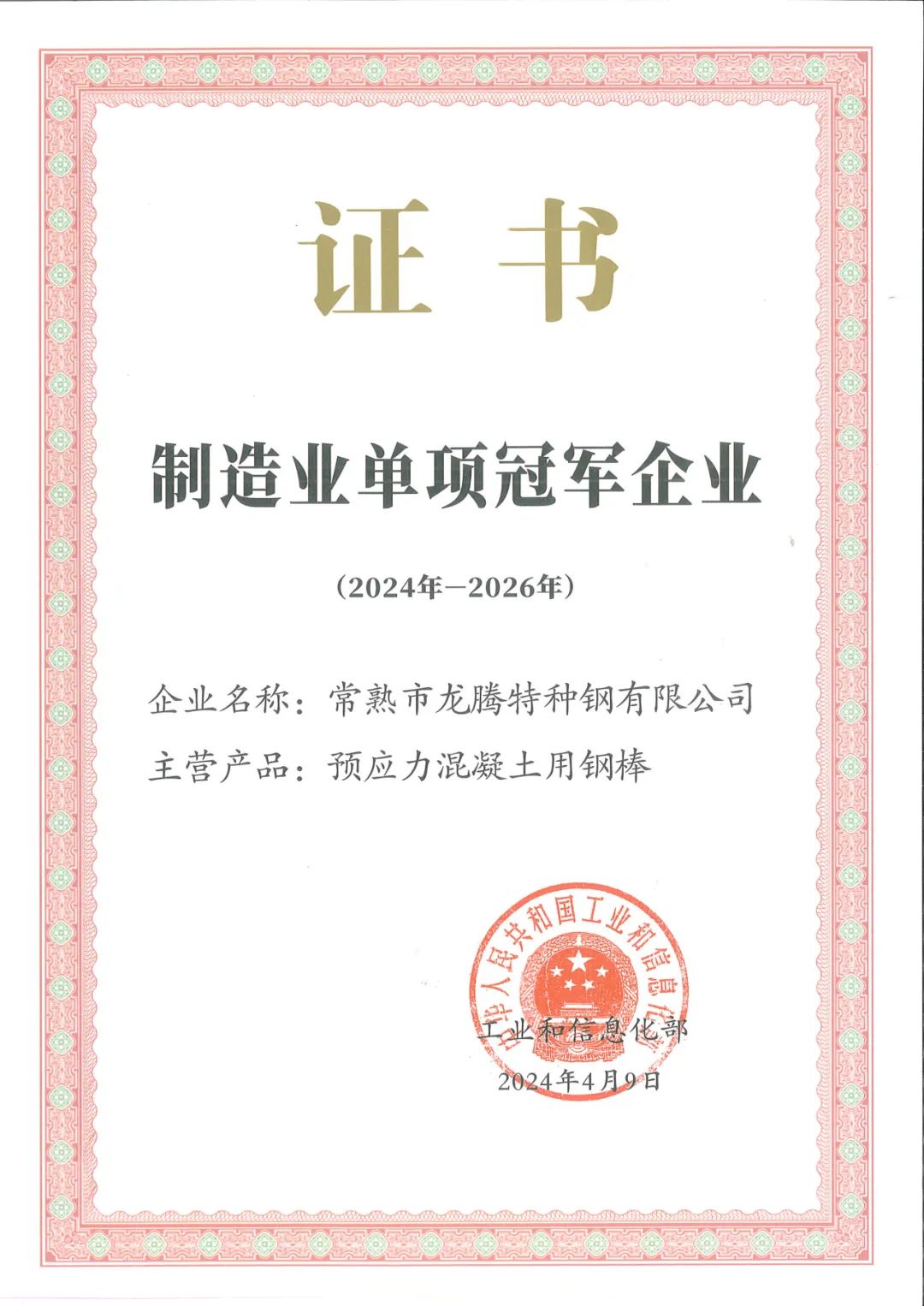 龍騰特鋼生產(chǎn)的預(yù)應(yīng)力混凝土用鋼棒(PC鋼棒)榮列其中。