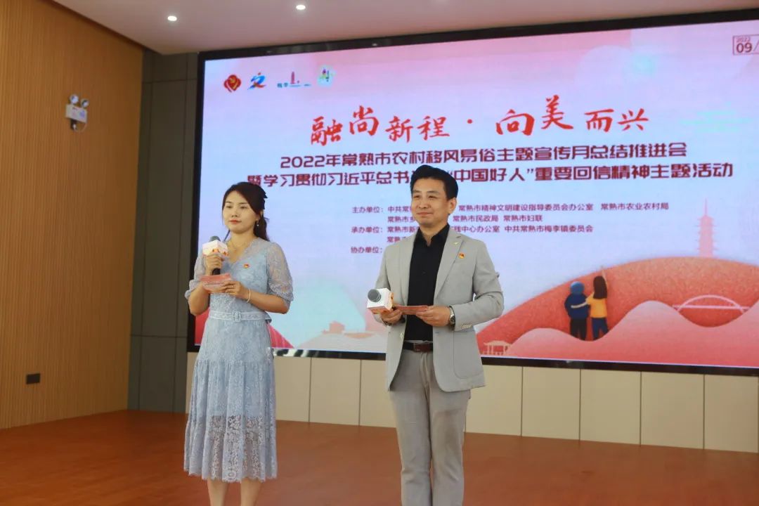 2022年9月29日,常熟市農(nóng)村移風易俗主題宣傳月總結(jié)推進會暨學習貫徹習近平總書記給“中國好人”重要回信精神主題活動在聚沙西村新風大禮堂隆重舉行,常熟市委宣傳部副部長、市文明辦主任王燕,梅李鎮(zhèn)黨委書記許曉波,龍騰特鋼董事長季丙元及相關(guān)單位領(lǐng)導和村民代表參加活動。